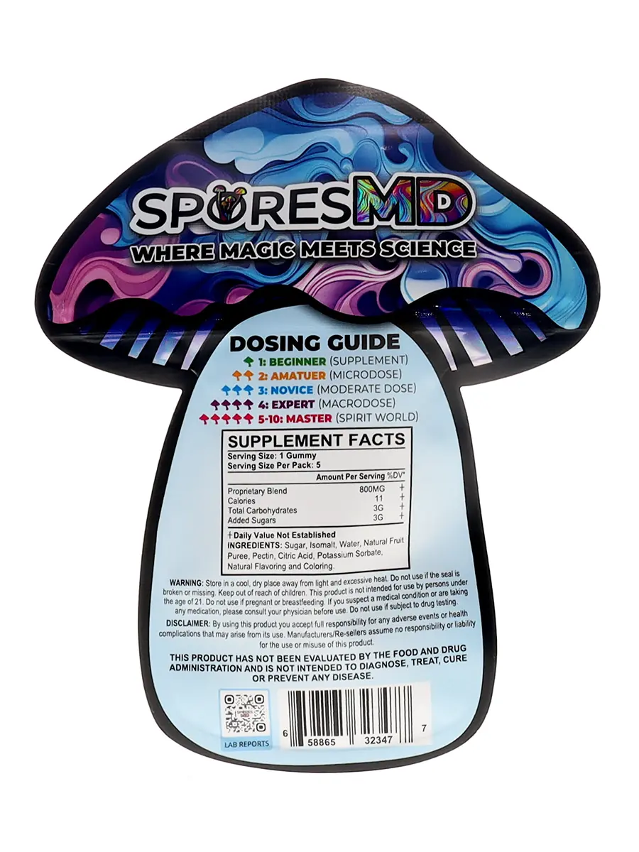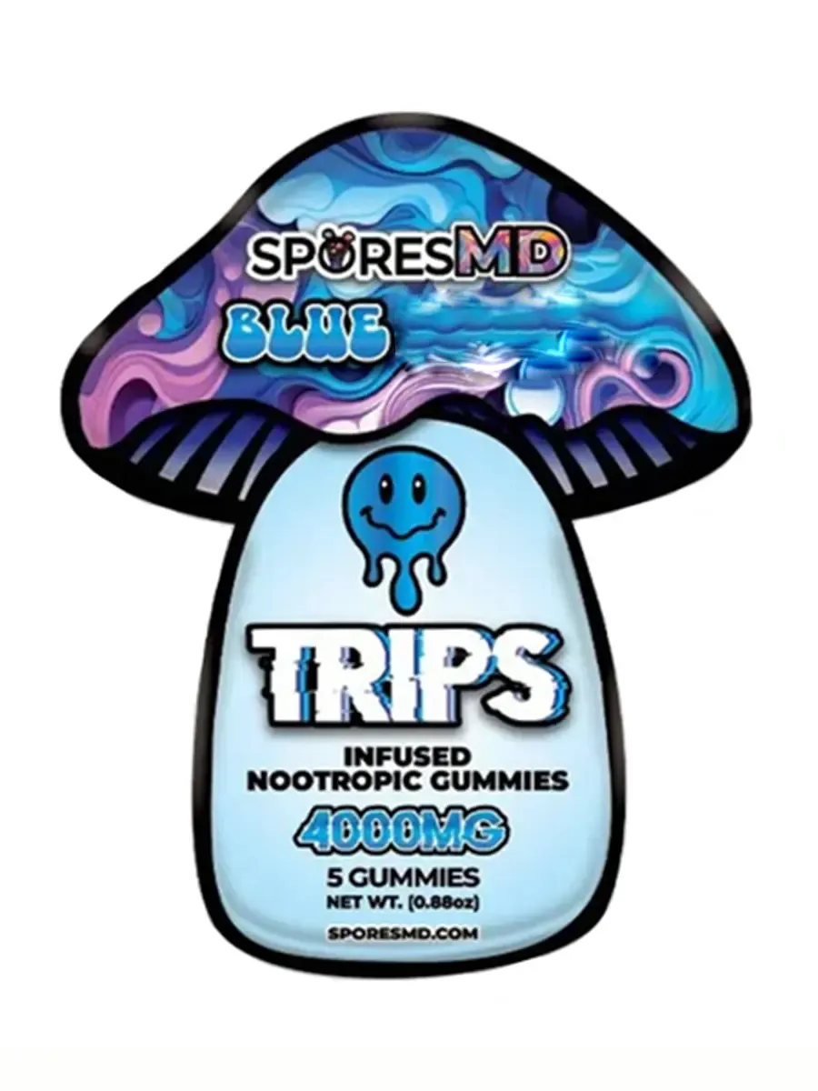 Immerse yourself in mental clarity with our Blue SporesMD Trips Infused Nootropic Gummies 5Pcs.