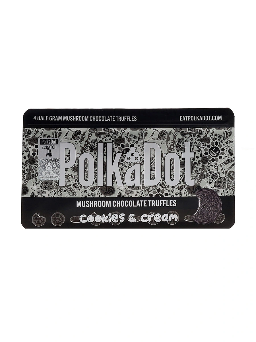 Treat yourself to the luxurious taste of Cookies & Cream PolkaDot Mushroom Chocolate Truffles. These half-gram delights combine creamy chocolate, crunchy cookie bits, and a hint of mushroom essence for a uniquely indulgent experience. Perfect for balancing sweetness and depth, each truffle offers a rich fusion of flavors that tantalize the senses, making them an irresistible choice for those craving a decadent twist on classic treats.