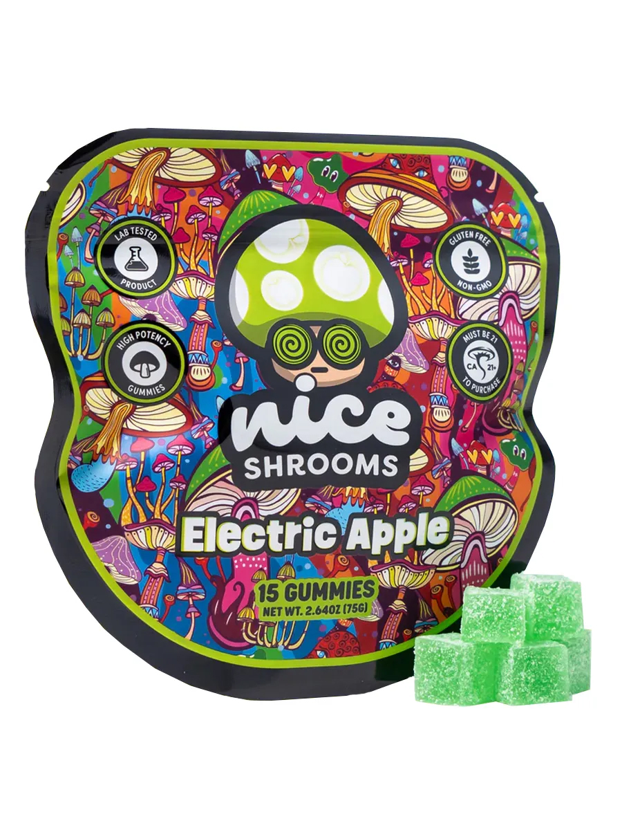 Order now and enhance your wellness routine with Electric Apple Nice Shrooms Mushroom Gummies!