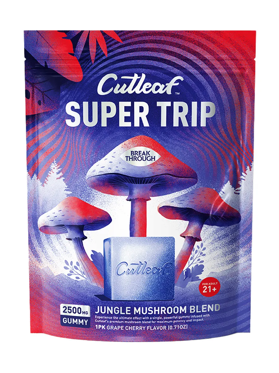 Indulge in a rich, fruity mix with Grape Cherry Cutleaf Super Trip Jungle Mushroom Blend Gummies 2500MG. This gummy is designed for those who want a bold and flavorful edible with a strong punch.