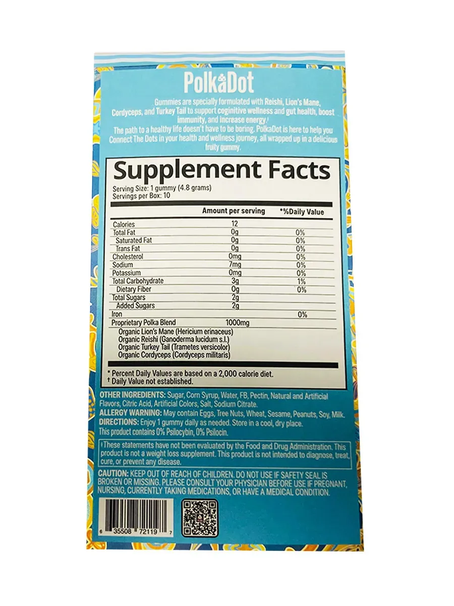 Natural Medicine: Limoncello Spritz PolkaDot Belgian Shroom Blend Gummies harness the power of shroom blend, one of the oldest and safest natural medicines in the world. Known for its ability to reduce stress, enhance mood, and stimulate cognitive function, shroom blend offers holistic wellness for the mind and body.