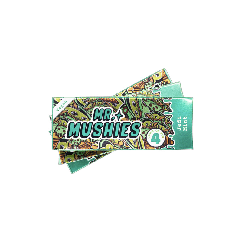 Traverse the unknown with Mr. Mushies Jedi Mint Vegan Chocolate Bar, a blend of 4 grams of organic mushrooms, creamy chocolate, and natural sweeteners. Mr. Mushies’ mushroom chocolate bars are conveniently divided into smaller pieces for precise dosing. 4 grams per bar!