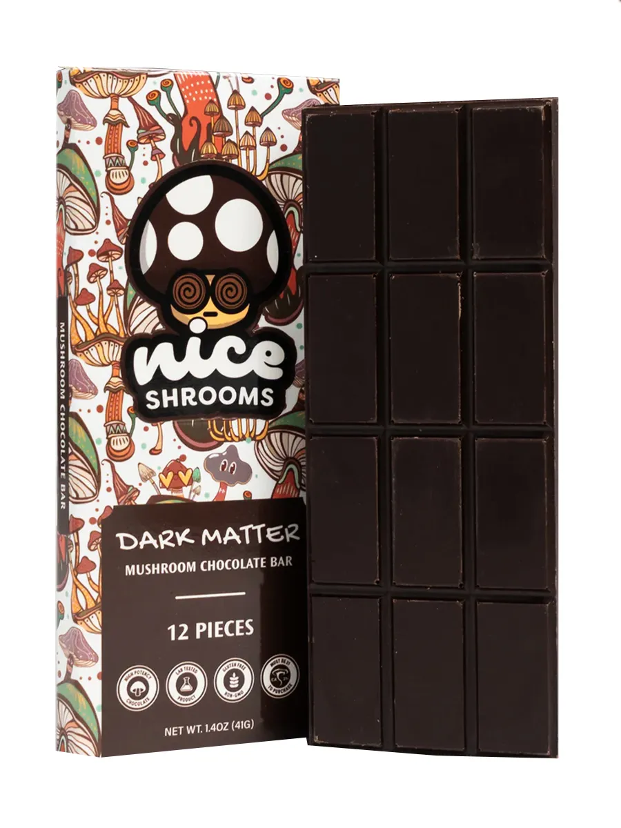 Premium Mushroom-Infused Dark Chocolate – Crafted with high-quality ingredients, this bar blends decadent dark chocolate with potent mushrooms for a bold, euphoric experience.