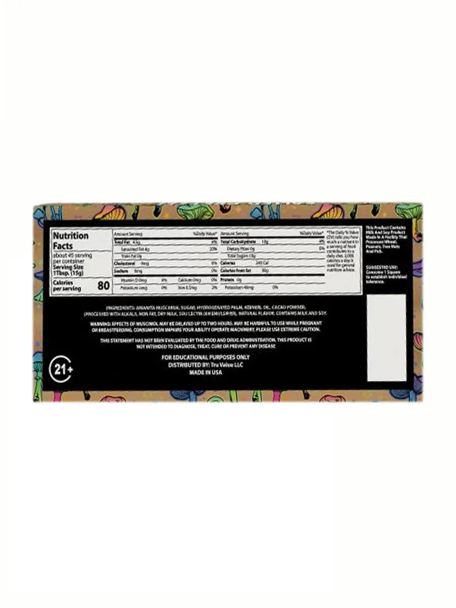 Amanita Muscaria Complex: Each bar contains 800mg of Amanita Muscaria complex (muscimol, ibotenic acid)