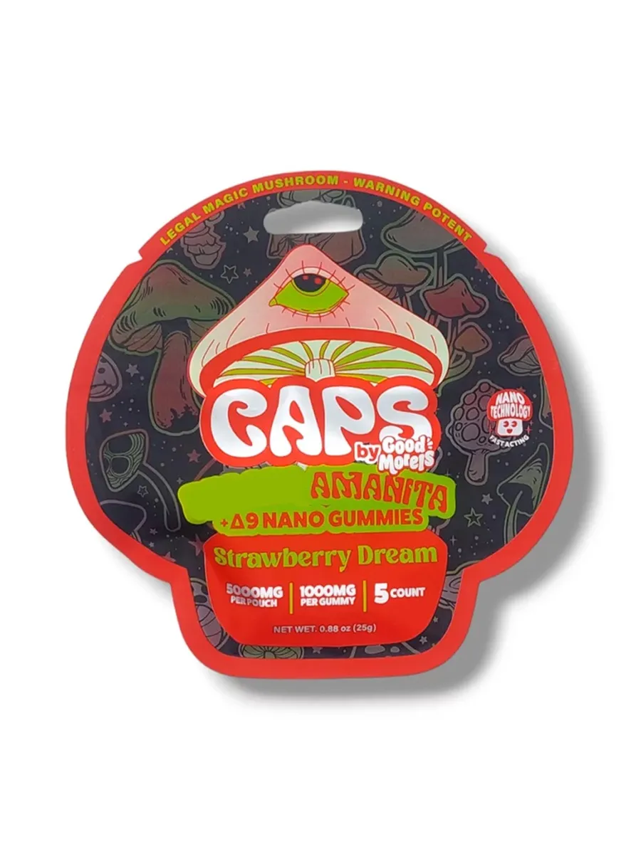 Strawberry Dream CAPS by Good Morels Amanita+D9 Nano Gummies 5000mg