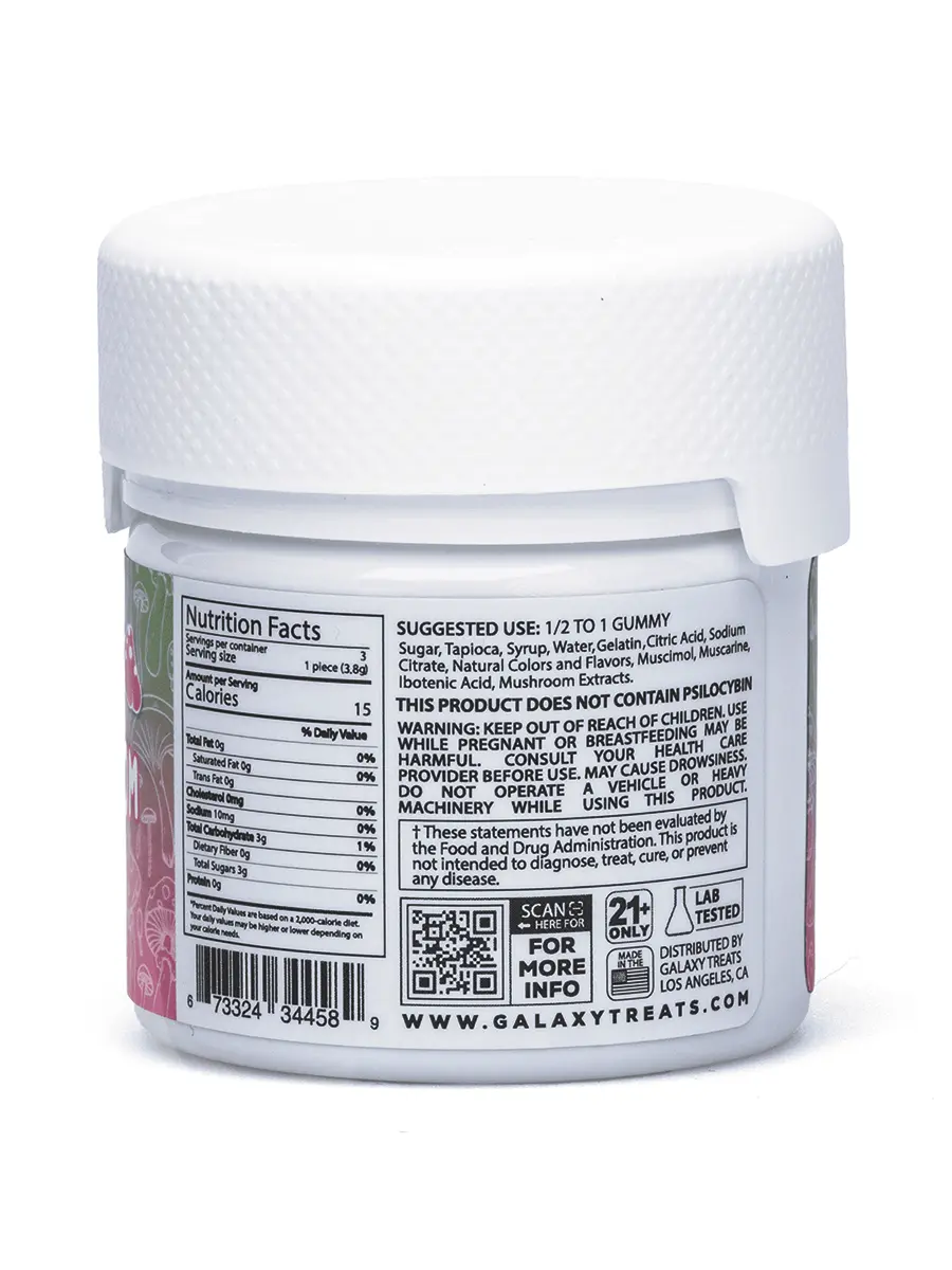 Introducing Watermelon Galaxy Treats Amanita Moon Shrooms Gummies 1050mg, potentially offering the experience you’ve been seeking. Infused with Amanita mushroom extract, known for its psychoactive properties, these gummies may induce feelings of euphoria, relaxation, and insight. The refreshing watermelon flavor might leave you craving more. Each gummy boasts 350mg of Amanita mushroom extract, and a single container contains three gummies, totaling 1050mg per jar. Amanita Muscaria, also known as Fly Agaric mushrooms, have been consumed for millennia. Today, Amanita Muscaria mushrooms are used for relaxation, self-exploration, and experiencing unique sensations like synesthesia and lucid dreaming.